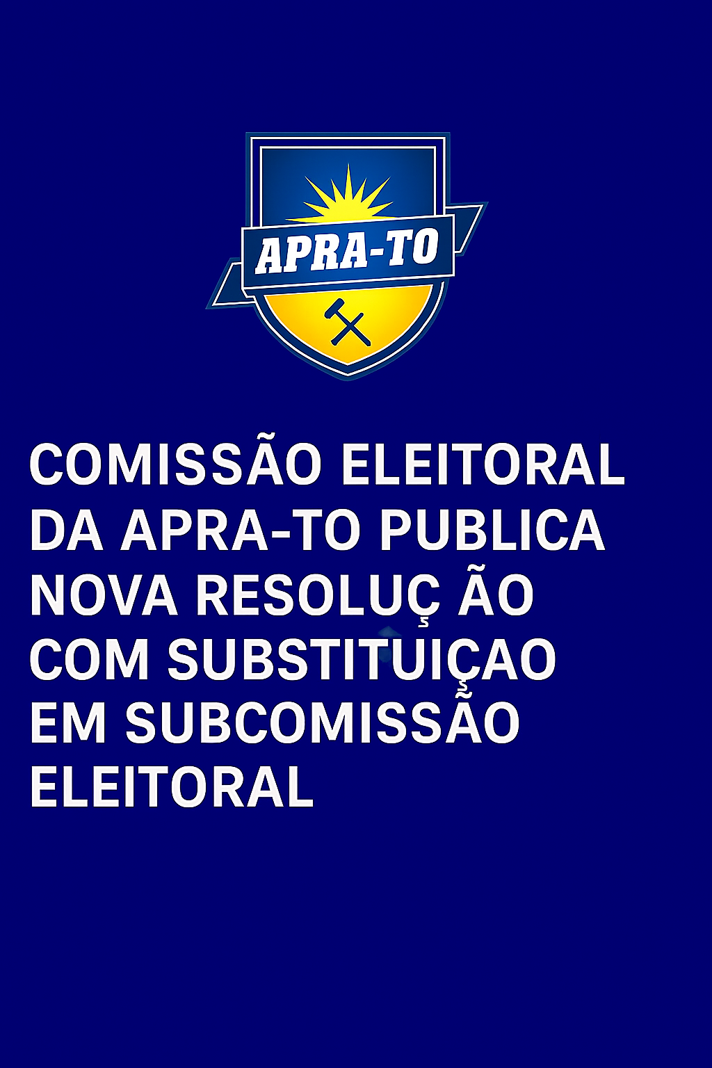A Comissão Eleitoral 2025 da Associação dos Praças Militares do Estado do Tocantins (APRA-TO) publicou, nesta quinta-feira (23), a Resolução nº 008/2025, que altera a Resolução nº 006/2025, substituindo um dos membros da subcomissão responsável por auxiliar no pleito eleitoral da entidade.